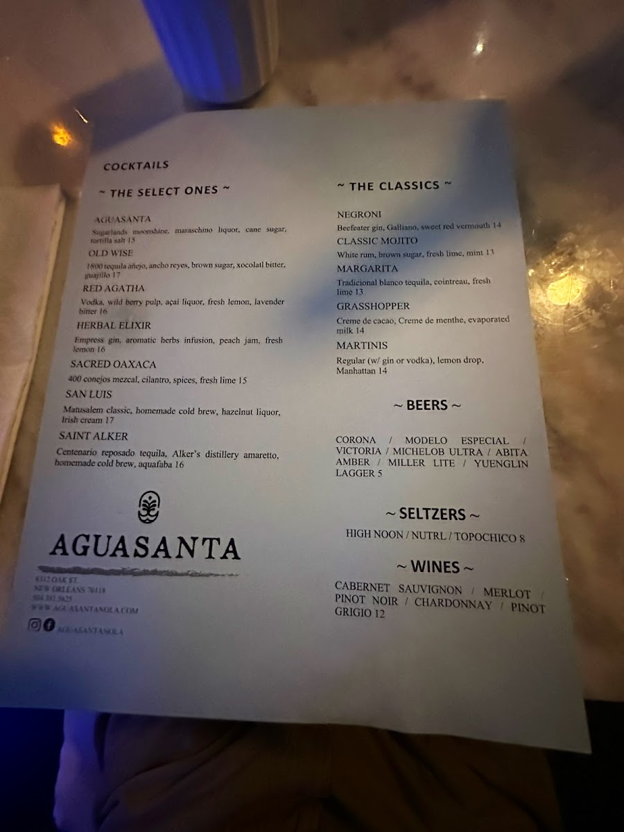 You’ll find the Aguasanta Menu full of bold flavors and comforting dishes that feel right at home in this cozy spot on Oak Street in New Orleans. As you flip through it, the first thing you notice is how each plate leans into fresh ingredients without trying too hard, letting the natural flavors do most of the talking. There’s a warm, inviting mix of familiar favorites and a few creative twists that make you pause just long enough to decide which direction you want to go.